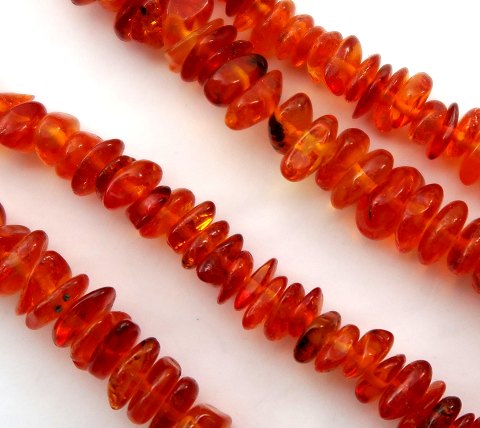 Halskæde af forarbejdet og poleret rav i forløb