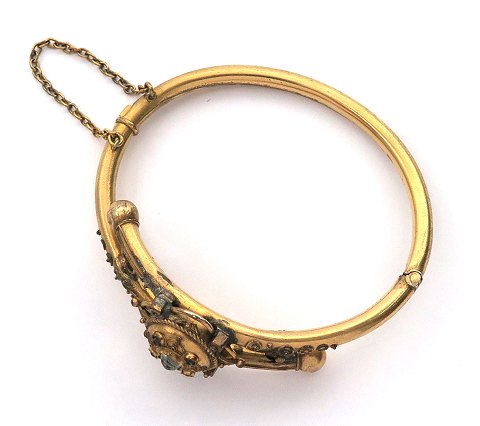 Antik armring af gulddoublé, prydet med klar sten