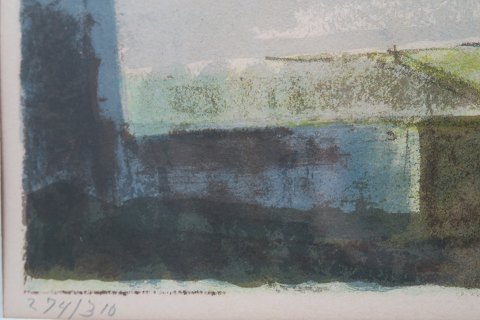 (CD) Svend Englund, blyantsigneret og nummereret 274/310 farvelitografi med landskabsmotiv, indrammet bag glas 70 x 55 cm.