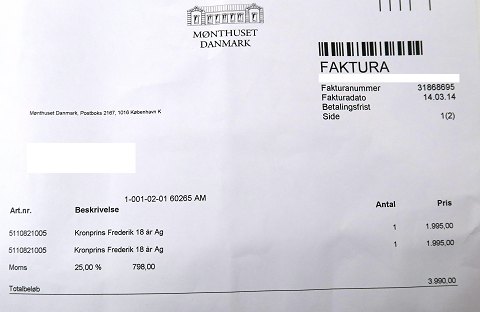 Dette mønt blev solgt af Mønthuset Danmark for kr. 1995,- i 2014.