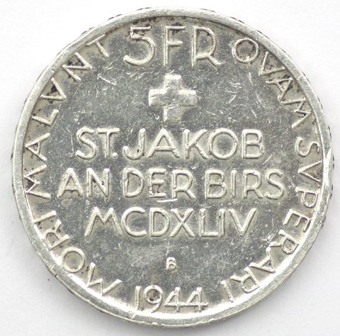 Schweiz, 5 Franken, 1944 B, sølv, 15 gr., .835, KM#45