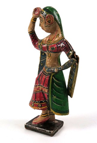 Antik indisk tempeldanserinde fra 1800'tallet af håndbemalet balsatræ, H. 25 cm.