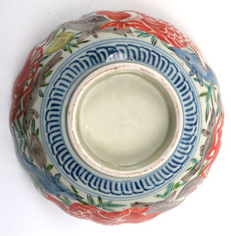Lot bestående af kinesisk fiskeskål (20. årh.), maskeron, to loppespil i laqueur dåser, heraf en med låg prydet med traner samt par bedekugler med klokker i stofbeklædt æske. Fiskeskål med kantafslag, diameter 22 cm.