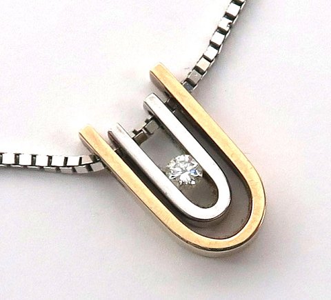 Halskæde og vedhæng af 14 kt. tofarvet guld med brillant 0,12 ct