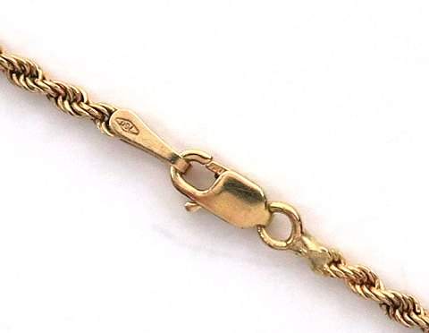 Halskæde af 18 kt. guld med flettede, snoede led. L.55,5 cm., vægt ca. 3,5 gr.