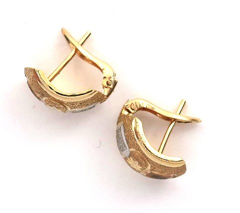 Par ørestikker af 18 kt. guld og rhodineret hvidguld med hamret front og stjerne. Front 9 x 14 mm., samlet vægt ca. 2 gr.