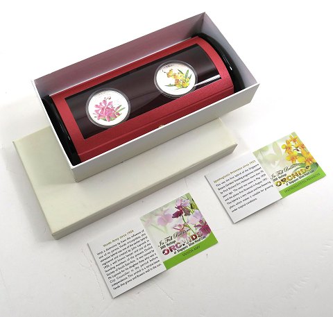 Singapore, $5, 2008, sølv, Proof, 1oz, Arandatay Swee Eng og Oncidium Goldiana ORCHIDS OF SINGAPORE serien, med præsentationsæske og certifikat (2)