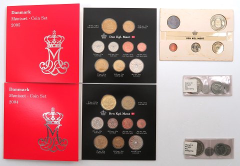 Møntsæt fra Den Kgl. Mønt 1973, 1974 og 1975 samt 2004 og 2005. Sættene fra 2004 og 2005 indeholder også årets medalje.