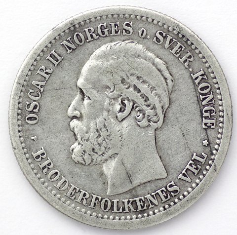 Norge, Oscar II, 1 kr. sølv 1877 - Sieg 58