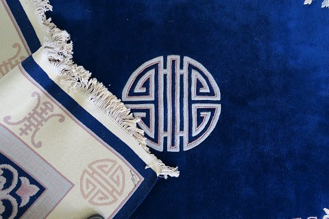Kinesisk uldtæppe, knyttet med ornamentmotiv.