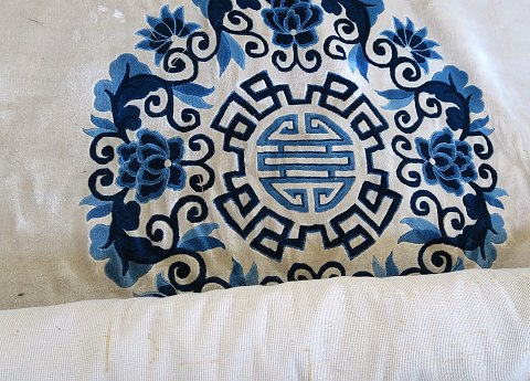 Kinesisk tæppe med silke, knyttet med ornament og dragemotiver.