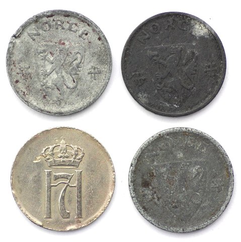 Norge, Haakon VII, 10 øre, 1920, samt Okkupation 1941, 42 og 1943 (4)