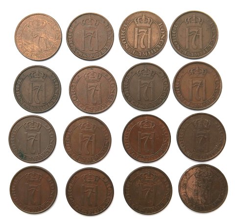 Norge, Haakon VII, 5 ører, 1923 - 1952, bronce komplet (16)