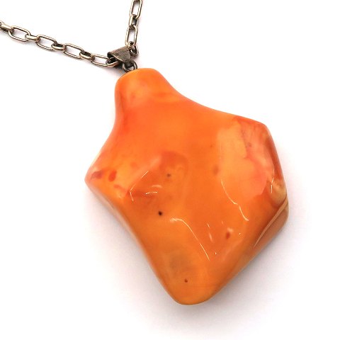 Vedhæng af lyst, poleret rav med halskæde af sterling sølv