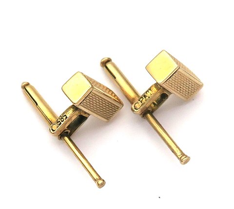 Par kraveknapper af 14 kt. guld med blokformet, mønstret front. L. 10 mm., samlet vægt ca. 4 gr.