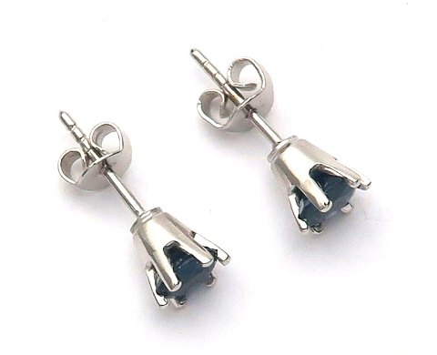 Par ørestikker af 14 kt. hvidguld med kronefatning, prydet med 2 store, facetslebne mørkeblå safirer, diameter 6 mm., samlet vægt ca. 3 gr.