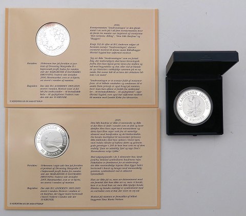10 kr. 2005 finsølv med motiv fra henholdsvis Den Grimme Ælling, Snedronningen og Den Lille Havfrue. Præget i anledningen af 200 året for H.C. Andersens fødsel. Hver mønt indeholder 1 ounce finsølv. To er monteret i samlerdisplay, hvor mønterne og deres historie beskrives. En er i original æske fra Den Kgl. Mønt.