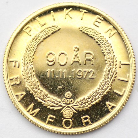 Medaille slået til minde om Kong Gustaf VI Adolf's 90 års fødselsdag 1972. Ø. 20 mm.