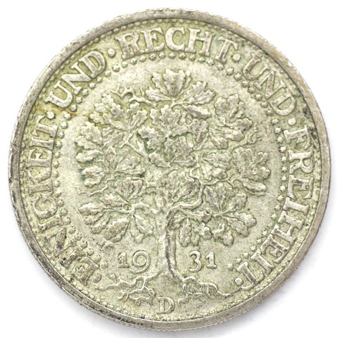 Tyskland, 5 Reichsmark, 1931 D, sølv