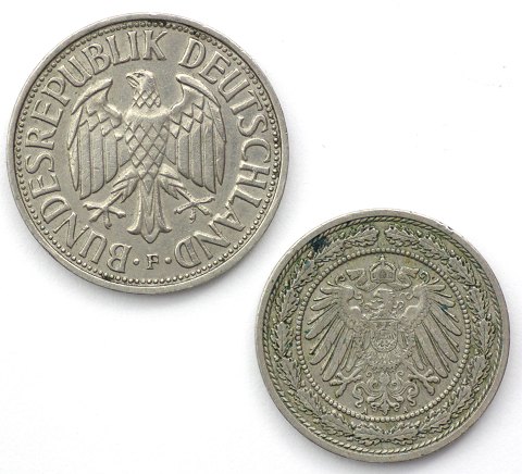 Diverse 1, 2, 3, 5, 10, 25 og 50 Pfennig, 200 og 500 Mark inflationsmønter 1923, ½ Heller 1905 *Deutsch Ostafrika*, 1 og 3 Kopeks *Gebiet Des Oberbefehlshaber OST* 1916J samt lidt bedre årstal 20 Pfennig 1890A og 2 Mark 1951F.