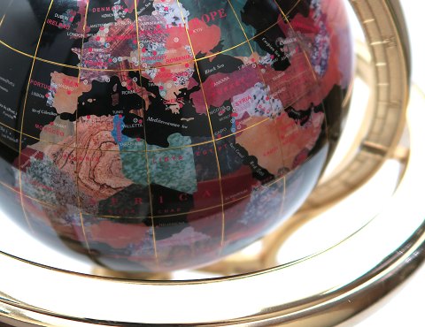 Globus diameter ca. 20 cm., gyro på fødder H. 36 cm., diameter 33 cm.