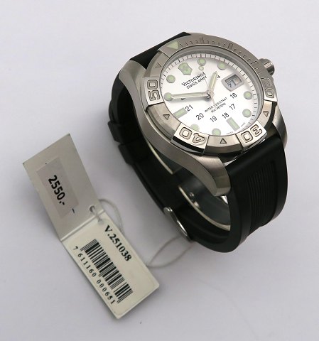 Fabriksnyt Victorinox Swiss Army herrearmbåndsur, ref. nr. V.251038 i urkasse og med lænke af stål. Alufarvet skive med arabertal, central sekundviser og datovisning i #3 position. Quartzværk. Urkasse diameter 43 mm. Vandtæt 500 mtr.