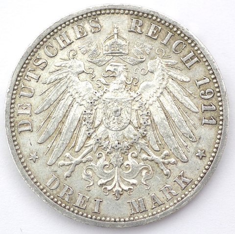 Preussen, 3 mark, 1911A, KM# 527