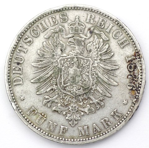 | Tyskland, Preussen, 5 Mark, 1876 C, sølv