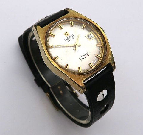 Tissot, PR 516 Automatic retro herrearmbåndsur i urkasse af guldtonet stål. Champagnefarvet skive med stregindikation, central sekundviser og datovisning i #3 position. Automatisk værk. Urkasse diameter 34 mm. Læderrem med metalspænde.