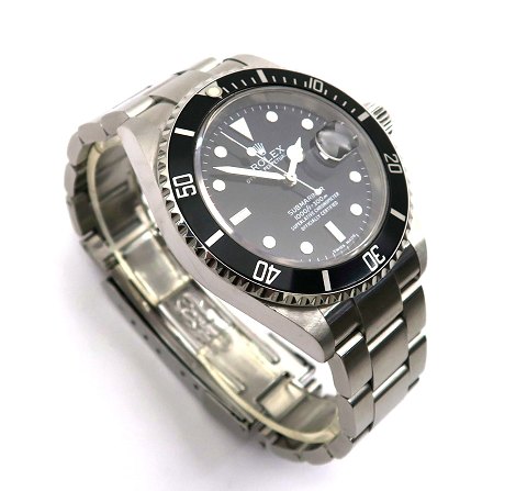 Rolex Oyster Perpetual Submariner herrearmbåndsur, ref. nr. 16610 i urkasse og med Oyster lænke af stål, sort skive bag safirglas med streg- og punktindeks, datoangivelse ved #3 position, automatisk værk. Urkasse diameter 40 mm.