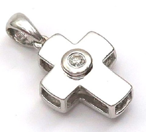 Vedhæng af 14 kt. hvidguld, prydet med brillantsleben diamant på 2,5 ct. samt besat med 24 mindre brillantslebne diamanter, samlet ca. 0,30 ct. Kors L. 24 mm., samlet vægt ca. 2,8 ct.