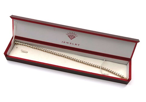 Tennisarmlænke af 18 kt. guld, prydet med 59 klare safirer, diameter 2,5 mm. Lænke L. 19,5 cm., samlet vægt ca. 13,5 gr.