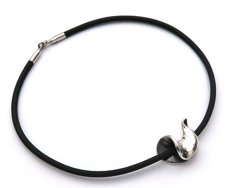 Design halssmykke af sterling sølv med lås og massiv vedhæng i form af due af sterling sølv. L. 47 cm., samlet vægt ca. 35 gr.