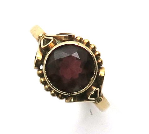 Ring af 14 kt. guld, prydet med facetsleben granat