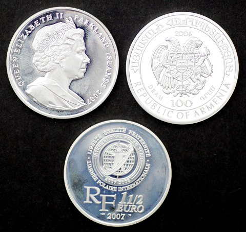 Polarmønter af sølv - proof, Falkland Islands, Armenien, Frankrig (3)