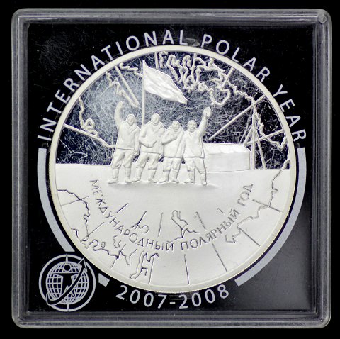 Rusland, 3 Rubler sterling sølv 2007, præget i anledning af det internationale polarår 2007-2009, finsølvindhold 31,3 gr.