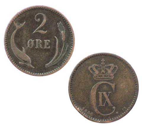 Danmark, Christian IX, 2 øre 1886 og 1887 - H 18 A (2)
