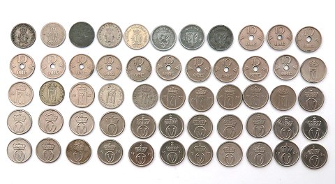 Heriblandt 10 øre 1892, -94, -98, -99, 1901 -09, -17 og 1919 sølv samt 10 øre okkupationsmønt 2x 1942, 2x 43 og 1944.