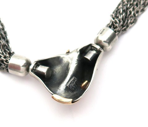 N. E. From collier bestående af 10 radet ankerkæde med enkelte, forgyldte tøndeled. Aftagelig vedhæng med forgyldt front. Kæde L. 39 cm., samlet vægt ca. 36 gr.