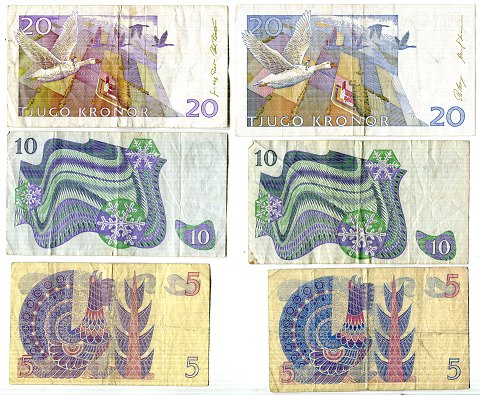 Sverige, 20, 10 og 5 Kronor 1966 ~ 1984 (6)