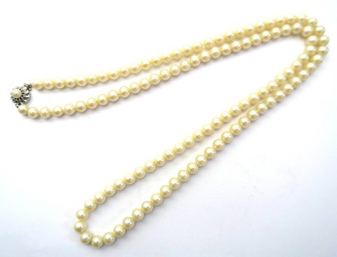 Perlekæde med 7½ mm. Mallorcaperler og lås af metal