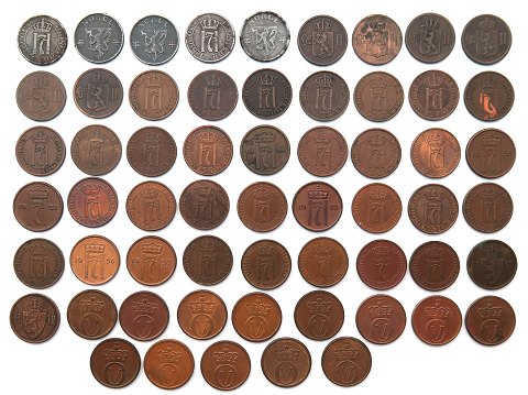 Lo bestående af blandt andet 2 øre 1877, -89, -91, -97, -99, 2 øre 1906 og 1907, 2 øre jern 1918 og 1919, okkupationsmønt 2 øre 1943, -44, - 45 samt bedre årstal 1909, -10, -11, -13, -14, -15, -21, -22, -29 og 1933.