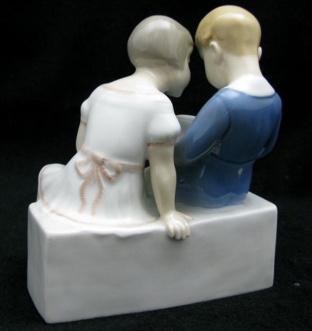 Bing & Grøndahl #2175, 14 cm., "Forfordelt" Dreng og pige på bænk, Design: Claire Weiss