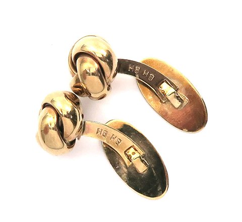 Par manchetknapper af 8 kt. guld i form af knude. Front diameter 13 mm., samlet vægt ca. 6 gr.