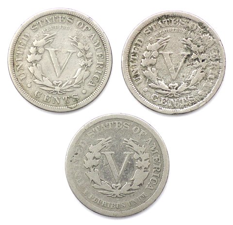 USA, 5 Cents (Liberty Nickel), 1883, 1884 og 1912(3)
