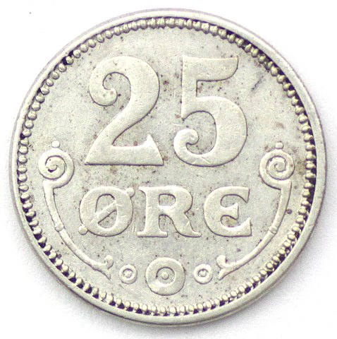 Christian X, 25 øre 1914 sølv - Sieg 3.1 H 10A
