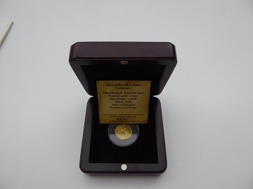 Gold stater struck posthumously with the name and likeness of Lysimachos, in the city-state of Tomis in Thrace.