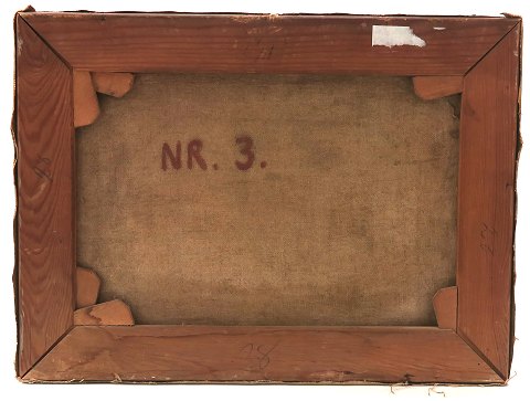 Naivistisk maleri, olie på lærred, signeret KH og dateret 47 med motiv fra før starten af den 1. Slesviske krig *Trompeteren dåner i sommervarmen* 38 x 28 cm.