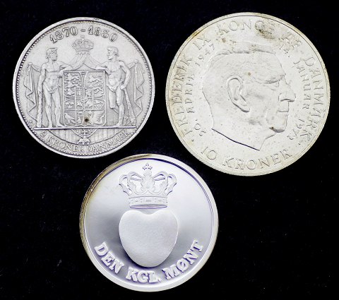 2 kr. 1930 sølv *Christian X 60 års dag*, 10 kr 1972 sølv *Tronskiftet* samt Kgl. Mønts medaille af sølv
