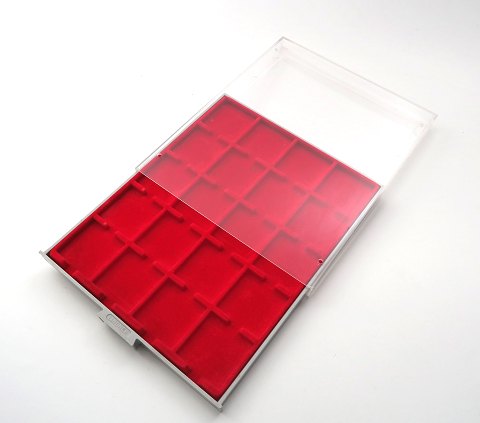 Lindner System møntboks med 20 fag til mønter eller medaljer med en diameter på op til 50 mm.